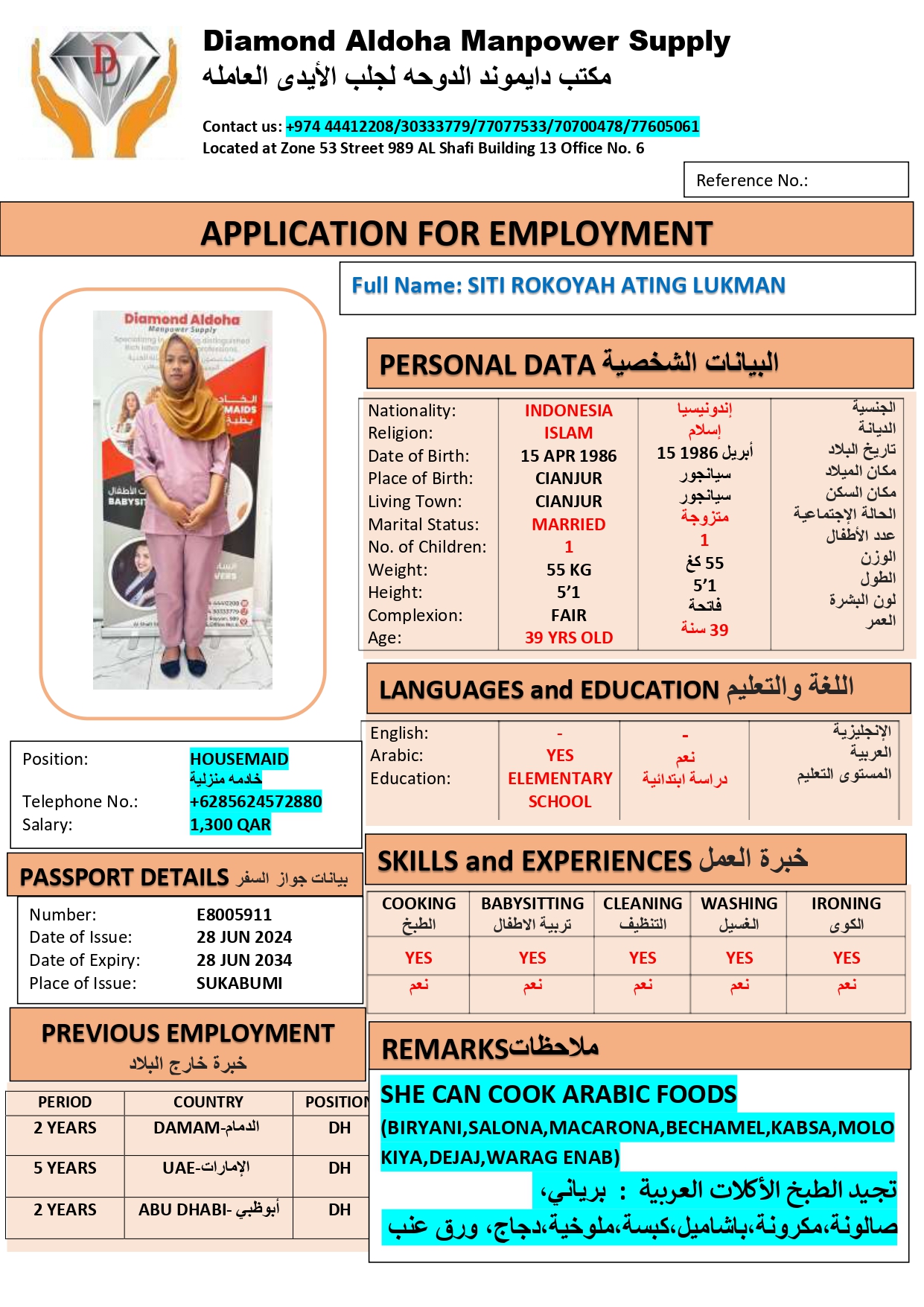 الاسم - عربي SITI ROKOYAH ATING LUKMAN