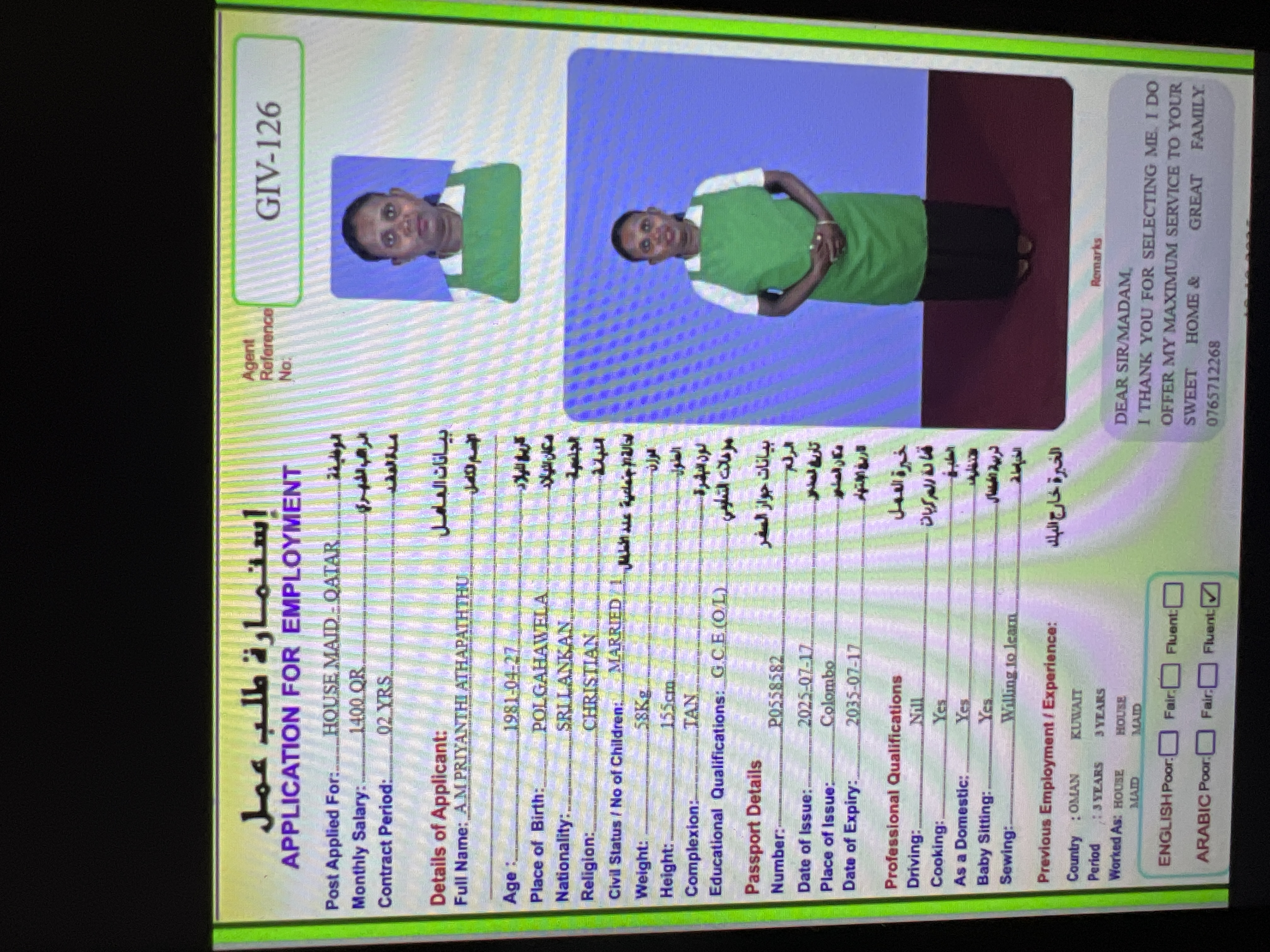 طلب استقدام خادمه من سريلانكا