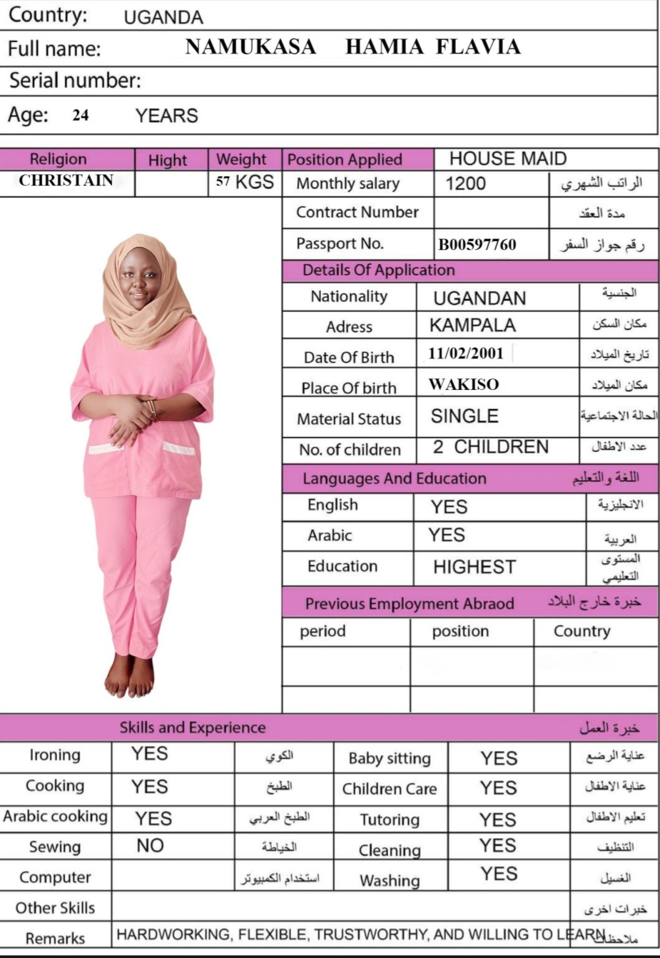 المهنة عاملة منزلية