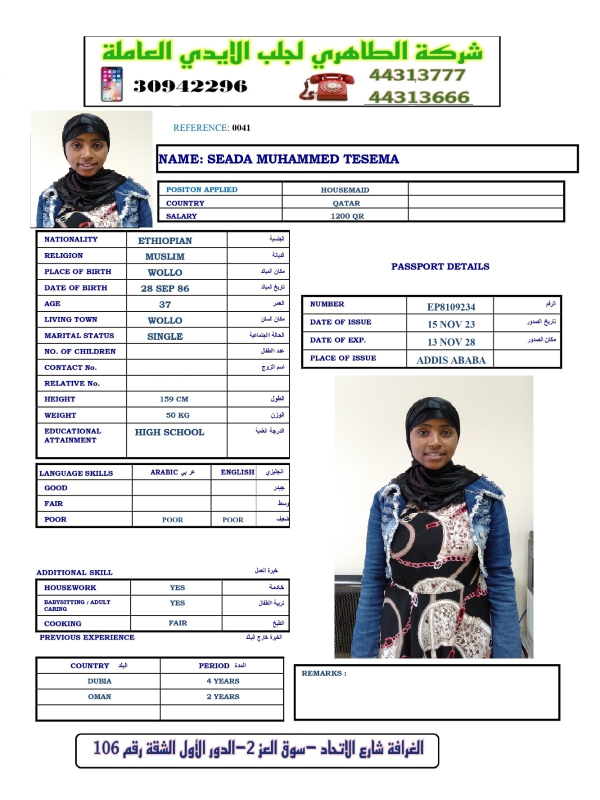 الاسم - عربي SEADA MUHAMMED TESEMA_