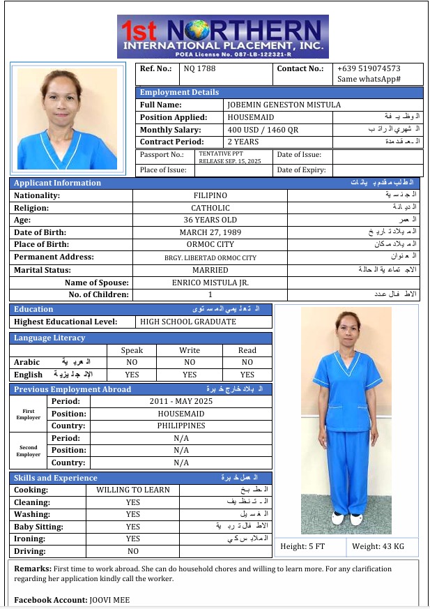 الاسم - عربي JOBEMIN MISTULA