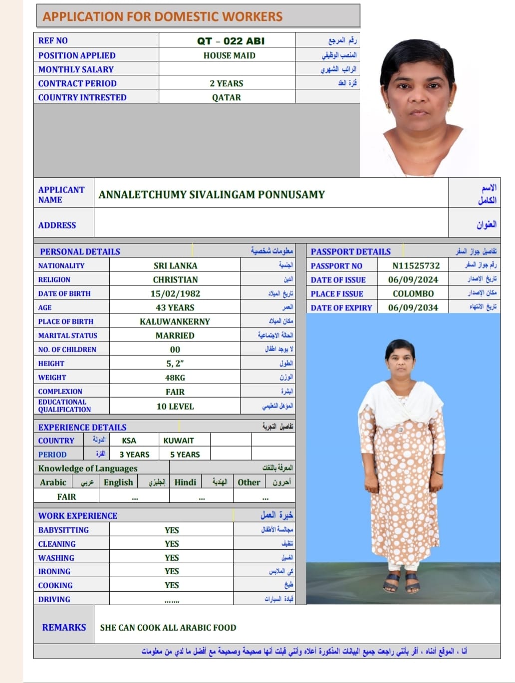 الاسم - عربي ANNALETCALINGAM SIVALINGAM PONNUSAMY