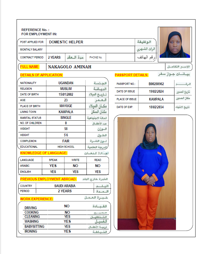 الاسم - عربي NAKAGOLO AMINAH