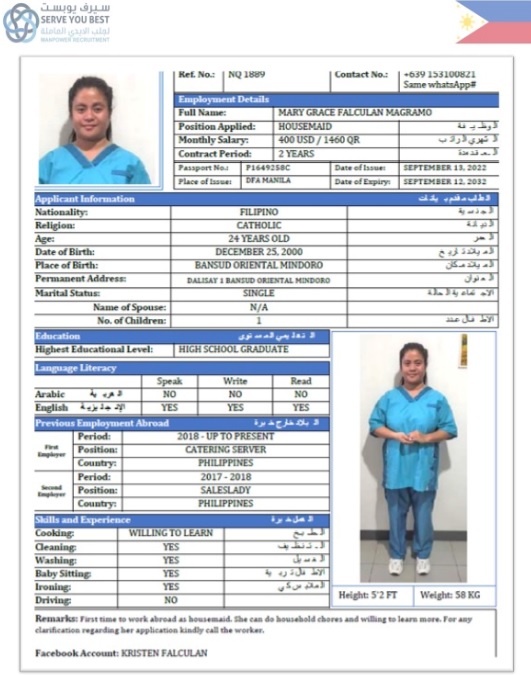 الاسم - عربي MARY GRACE FALCULAN MAFRAMO