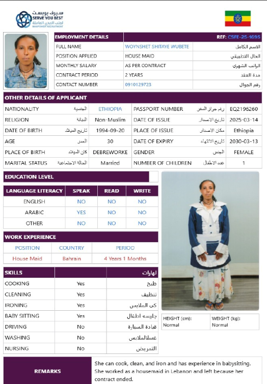 الاسم - عربي WOYNSHET SHITAYE WUBETEE