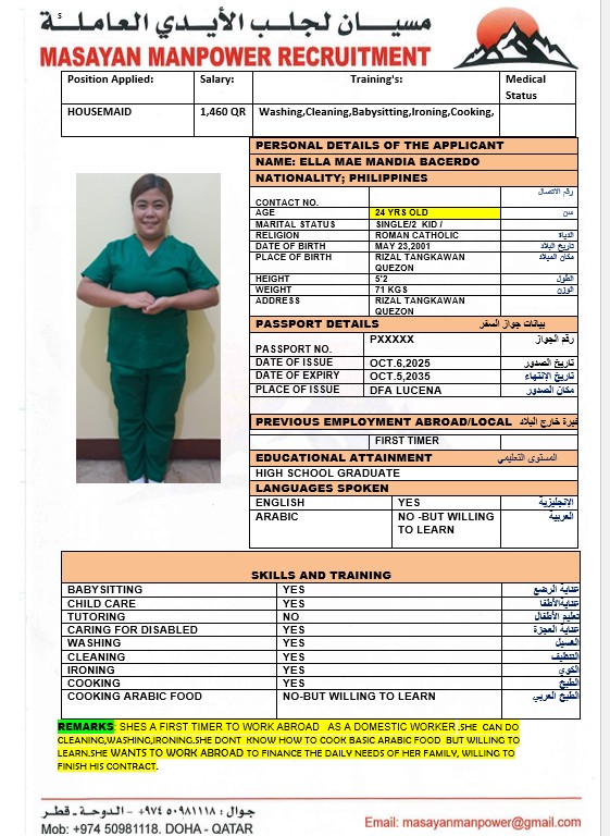 الاسم - عربي ELLA MAE MANDIA BARCEDO