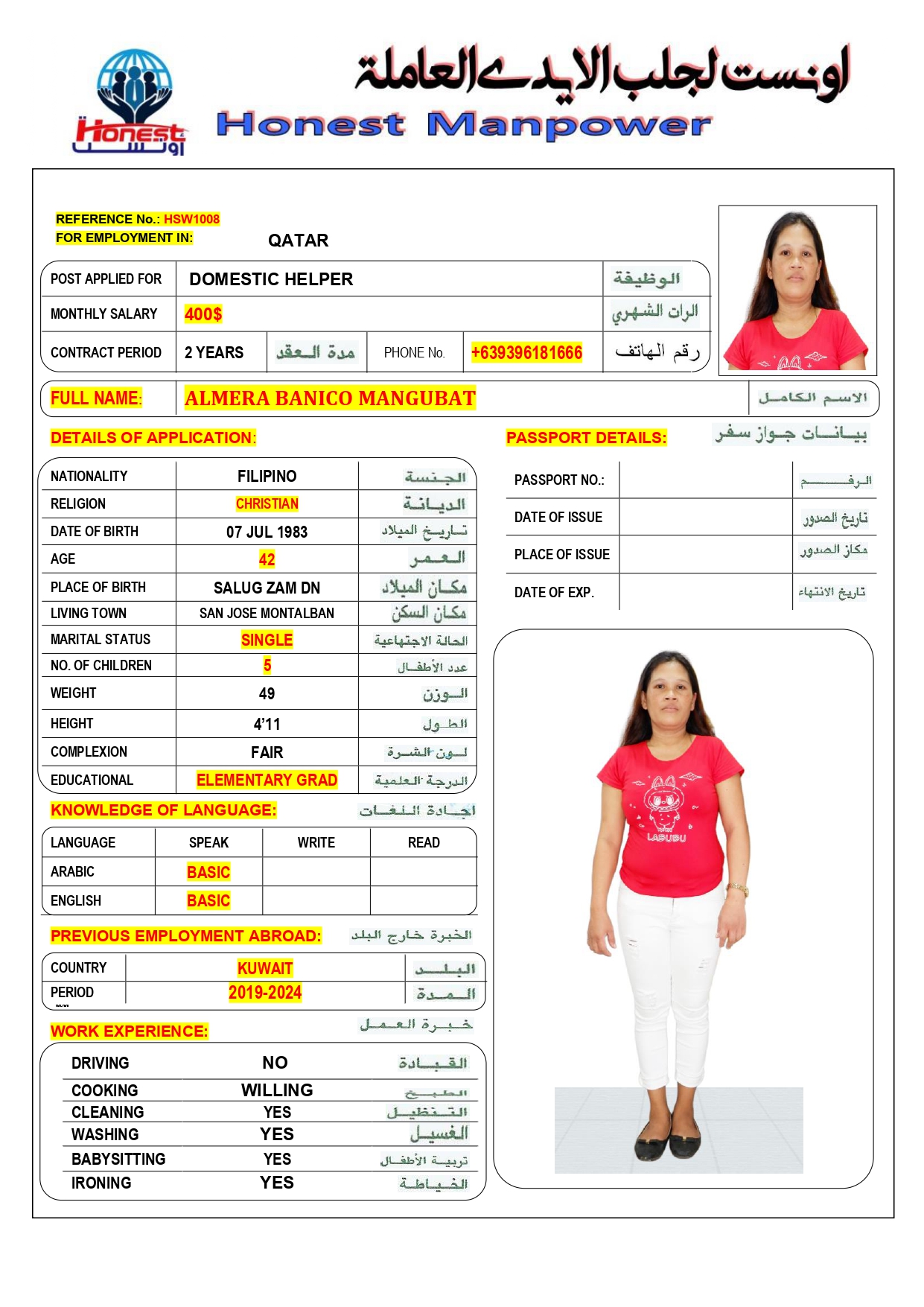 الاسم - عربي ALMERA BANICO MANGUBAT