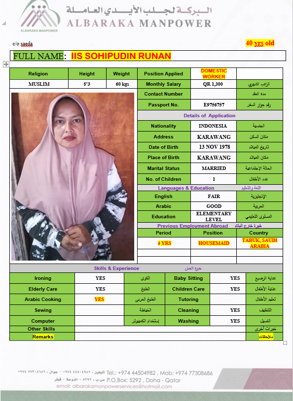 الاسم - عربي IIS SOHIPUDIN RUNAN