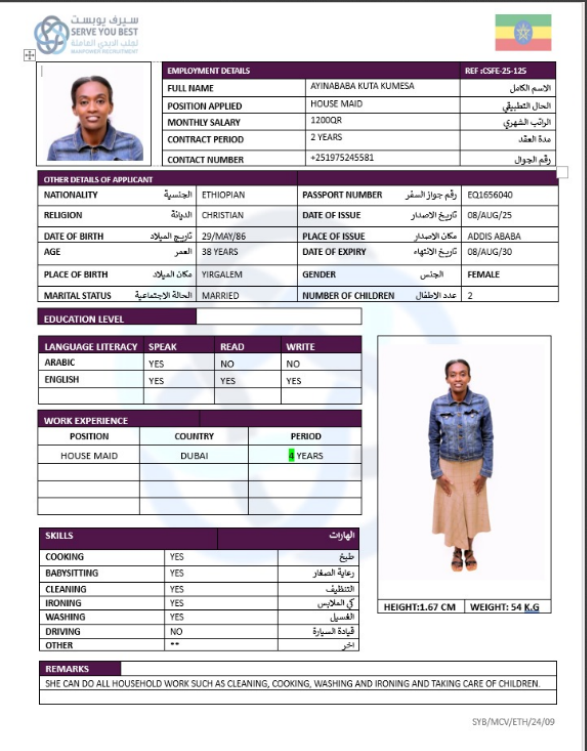 الجنسية أثيوبيا