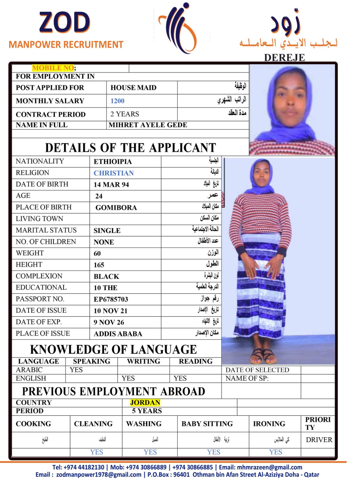 الاسم - عربي MIHRET AYELE GEDE