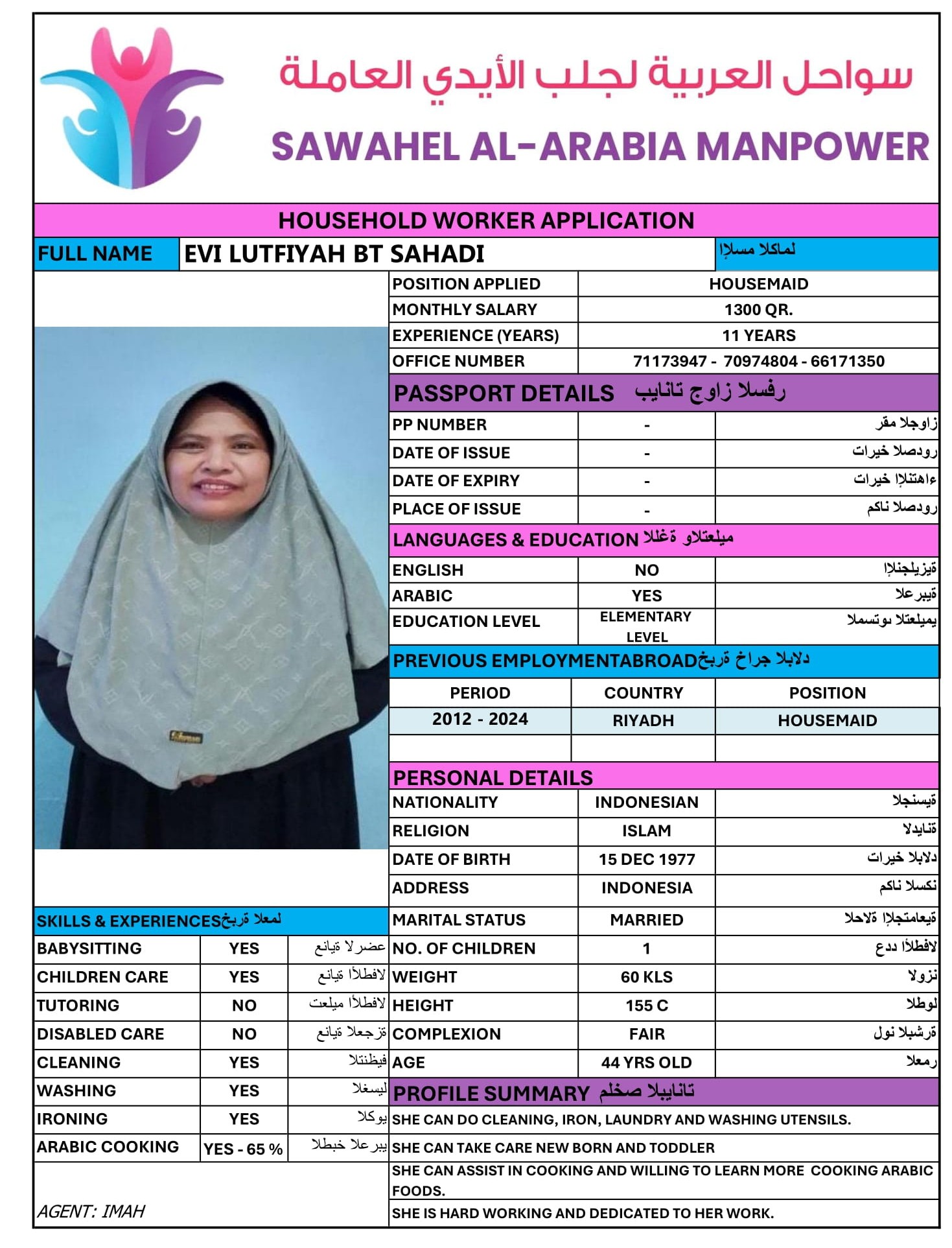 الاسم - عربي EVI LUFTIYAH BT SAHADI -INDONESIA 01