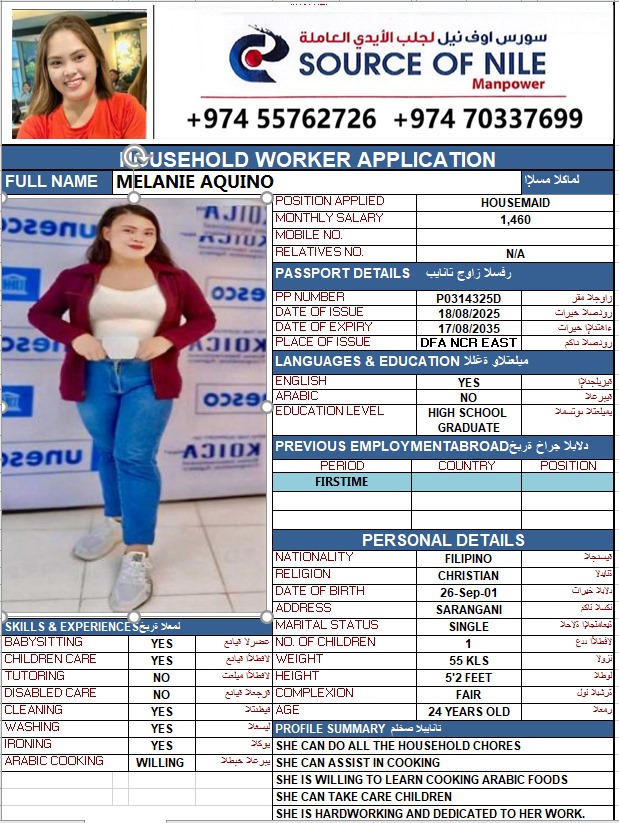 المهنة عاملة منزلية