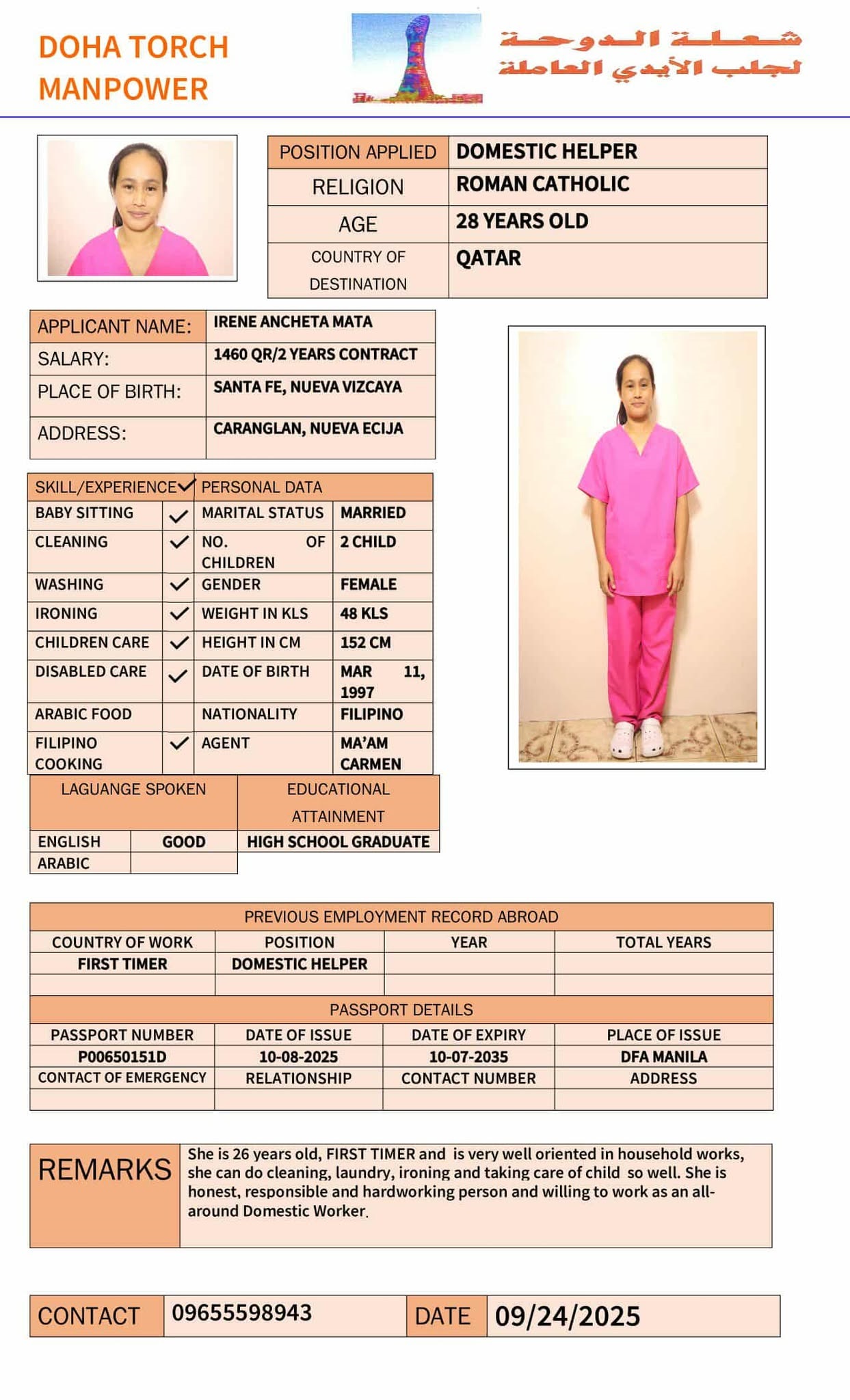 الاسم - عربي IRENE MATA