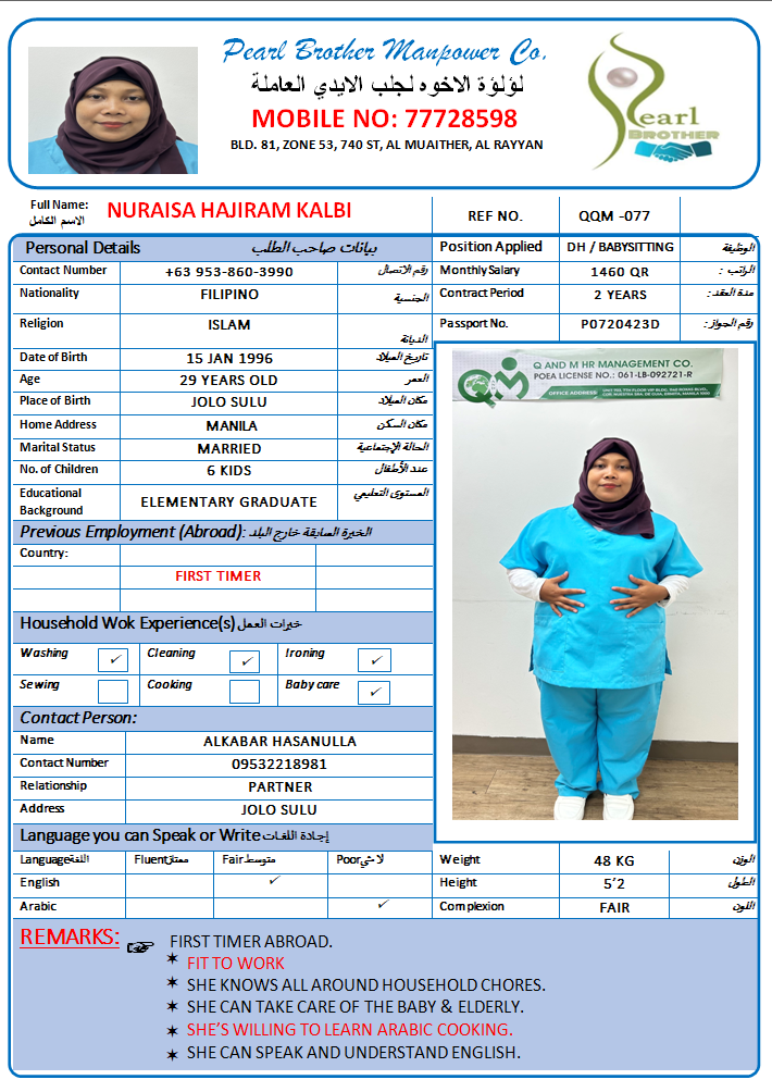 الاسم - عربي NURAISA HAJIRAN KALBI