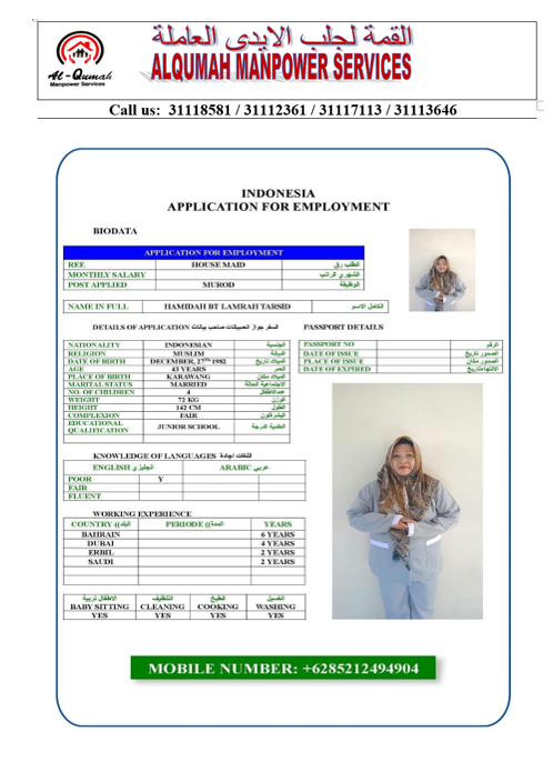 الاسم - عربي HAMIDAH BT LAMRAH TARSID