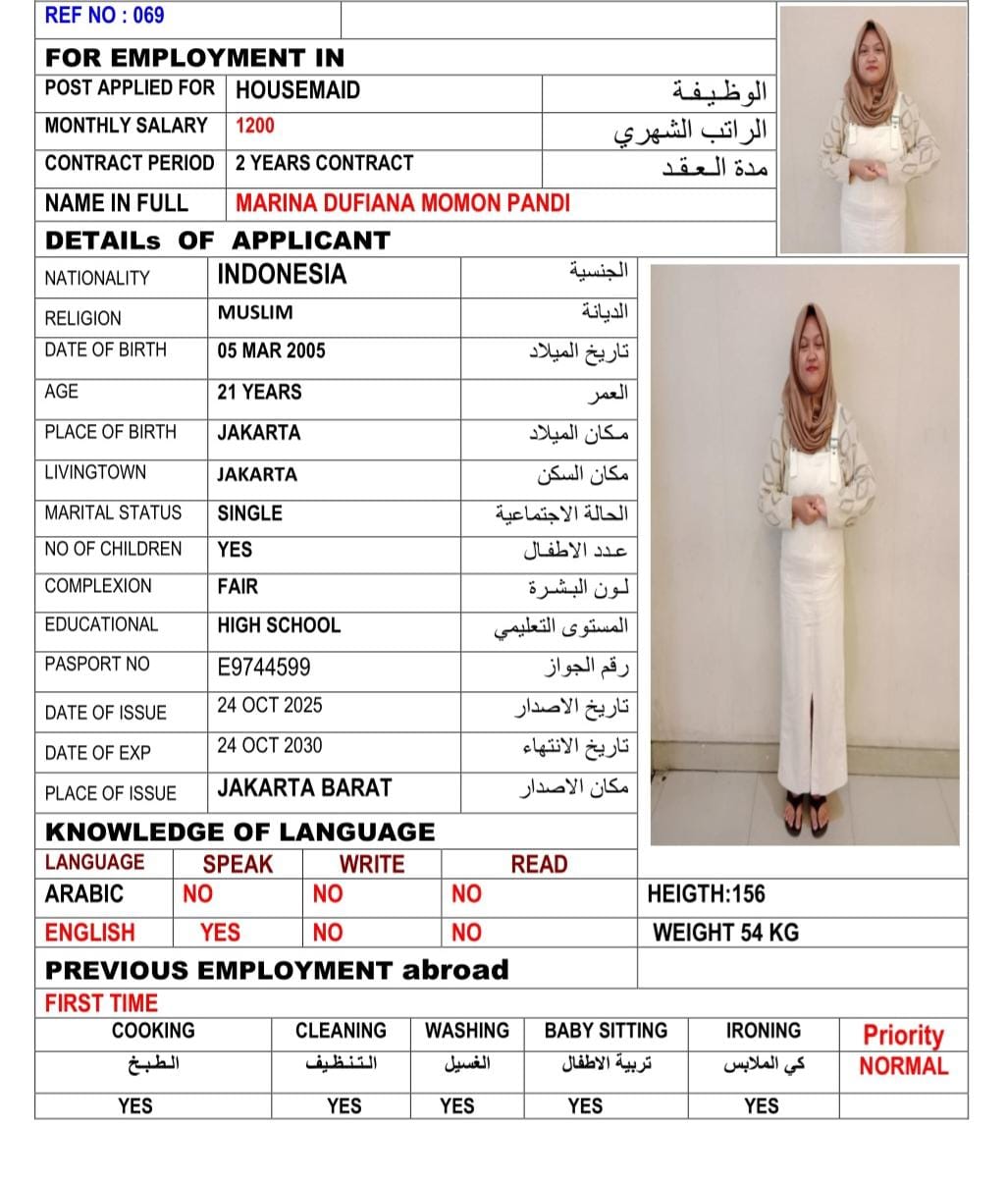الاسم - عربي MARINA DUFIANA MOMON PANDI