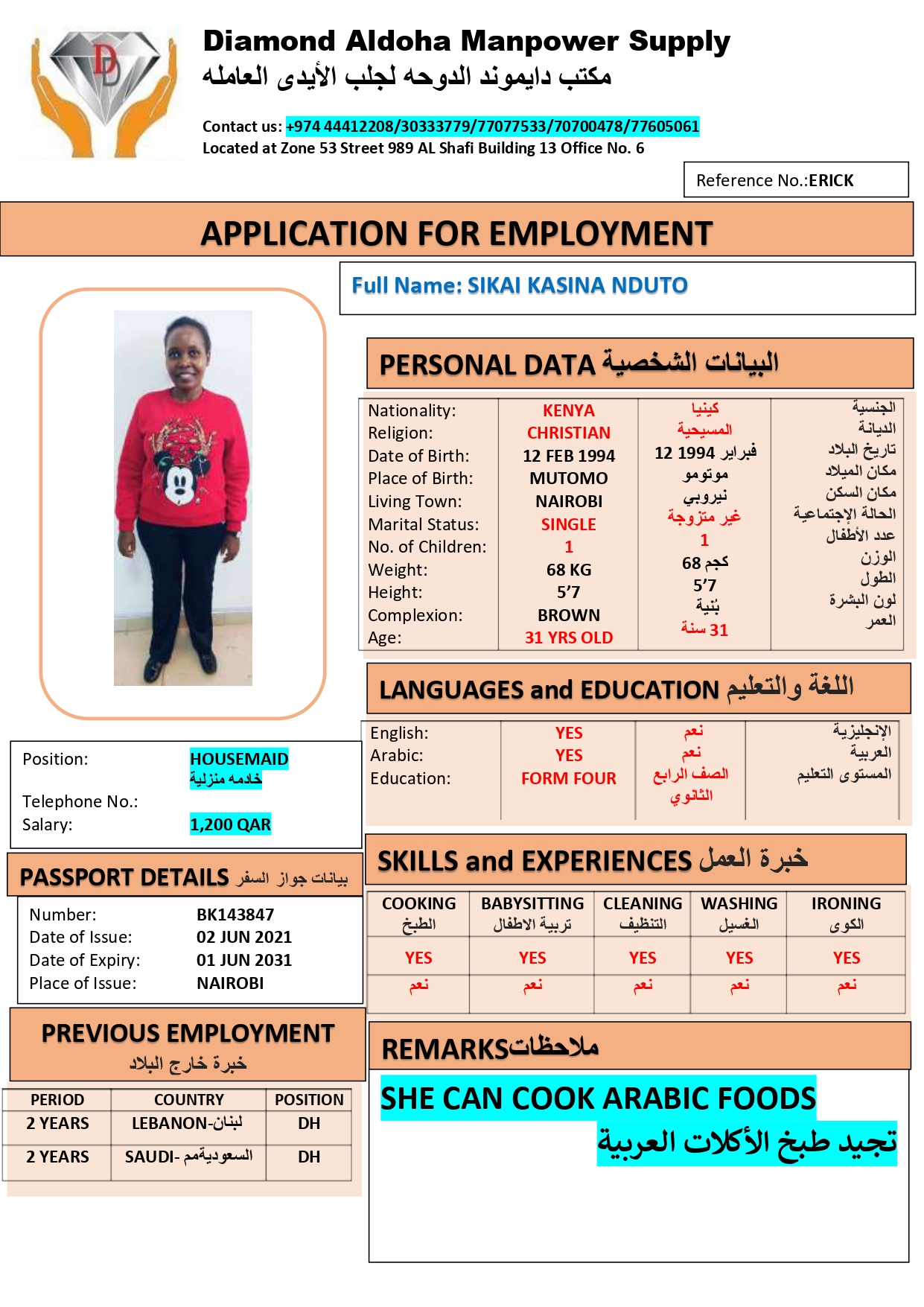 الشركة ‏ دايموند الدوحة لجلب الايدى العاملة