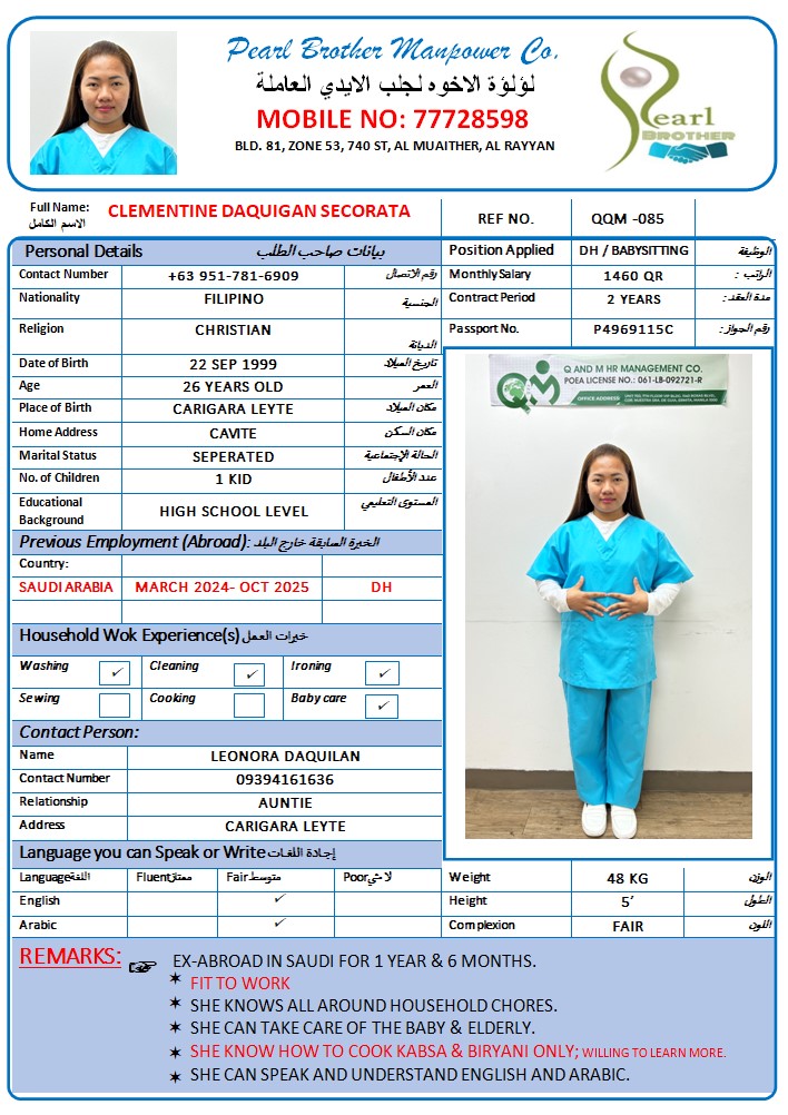 المهنة عاملة منزلية