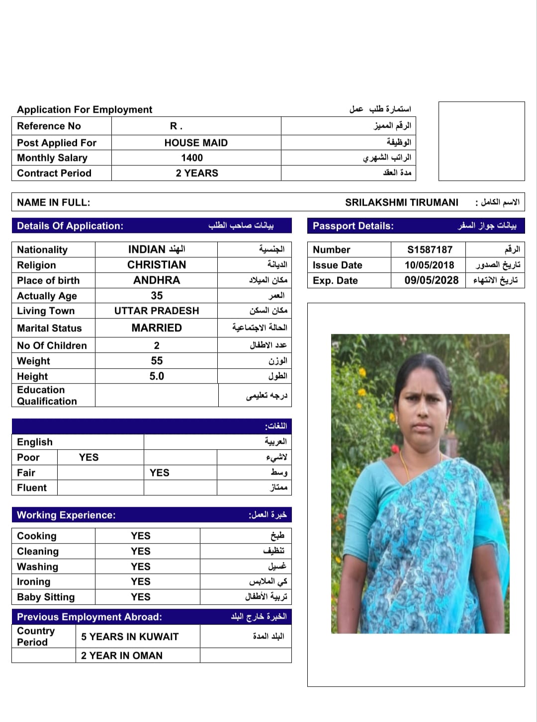 الاسم - عربي SRILAKSHMI TIRUMANI