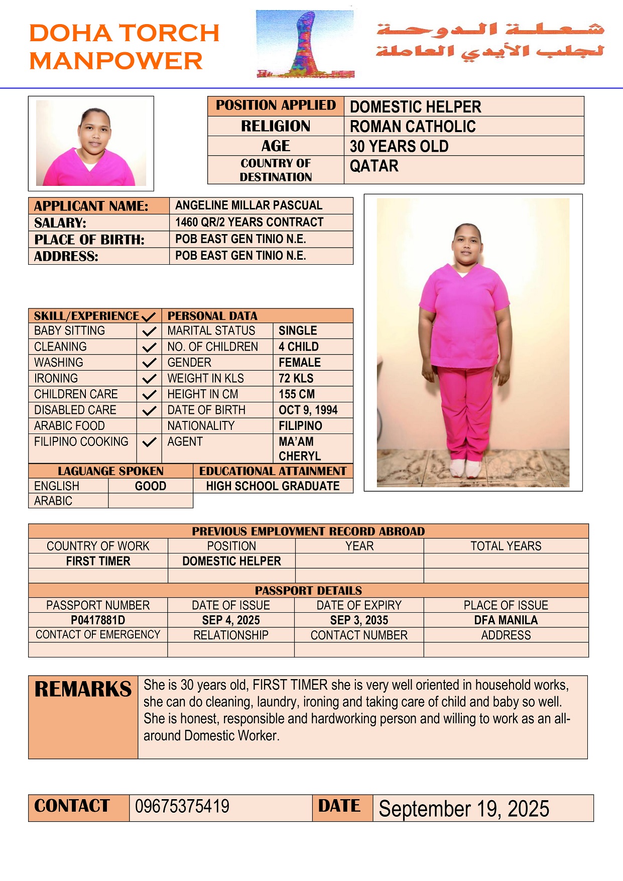 الاسم - عربي ANGELINE PASCUAL
