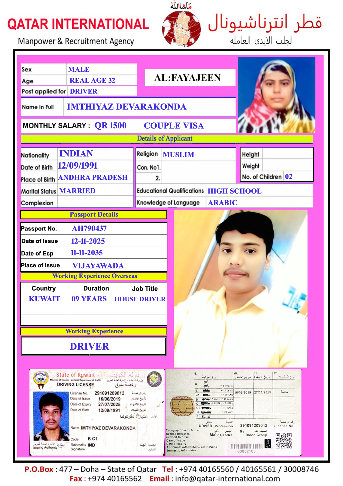 الاسم - عربي IMTHIYAZ DEVARAKONDA