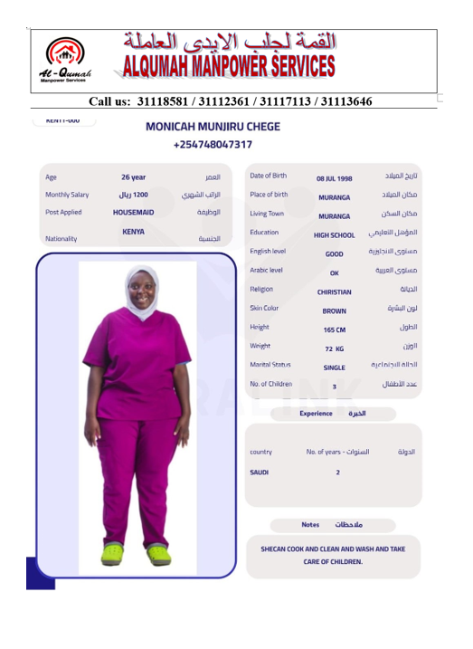 الاسم - عربي MONICAH MUNJIRU CHEGE