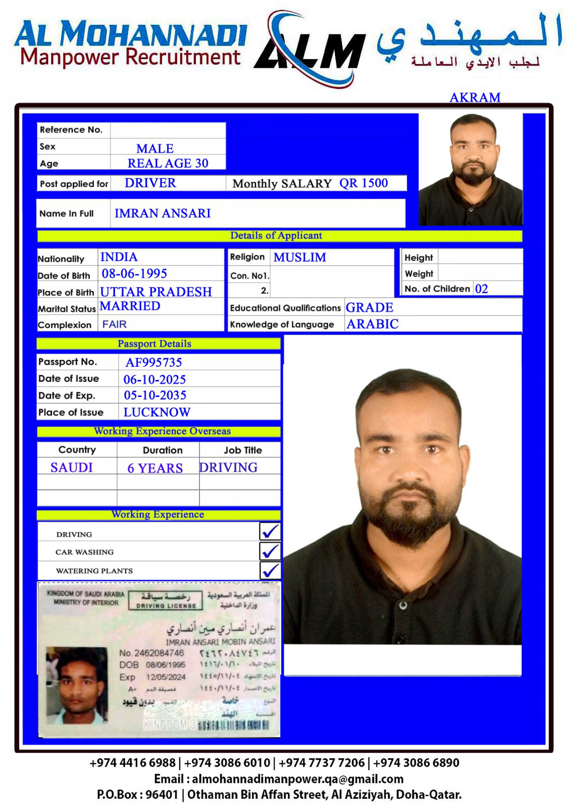 الاسم - عربي IMRAN ANSARI