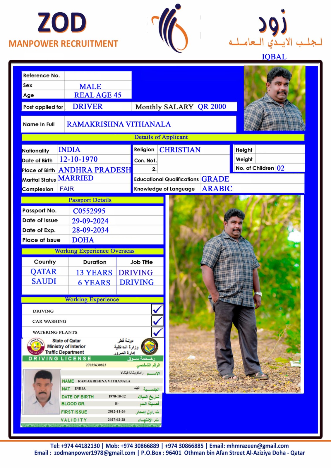 الاسم - عربي RAMAKRISHNA VITHANALA