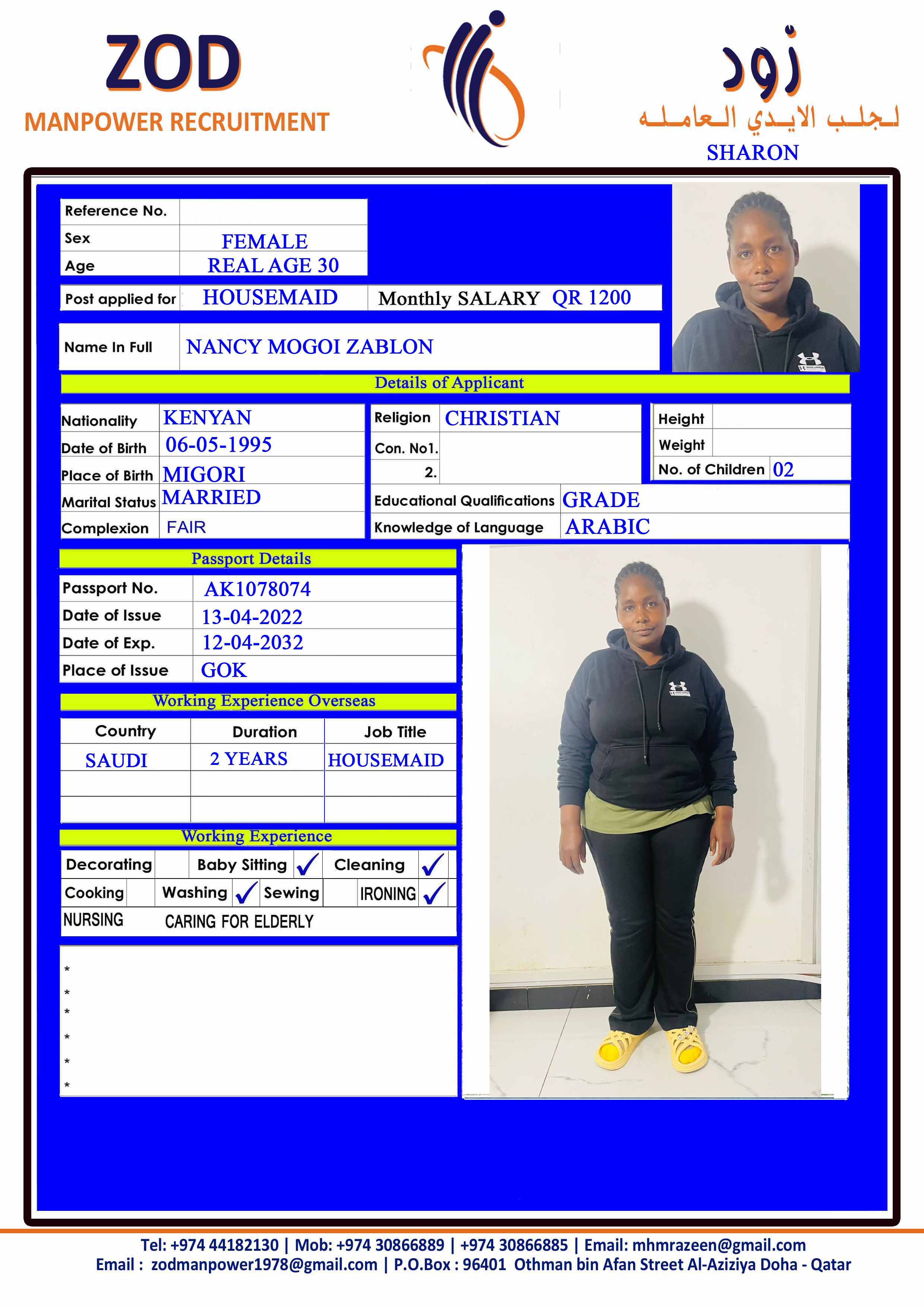 الاسم - عربي NANCY MOGOI ZABLON 232