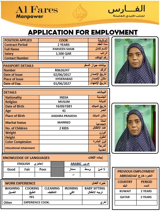 الاسم - عربي PARVEEN SHAIK