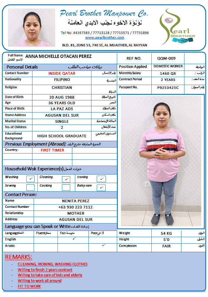 الاسم - عربي ANNA MICHELLE OTACAN PEREZ