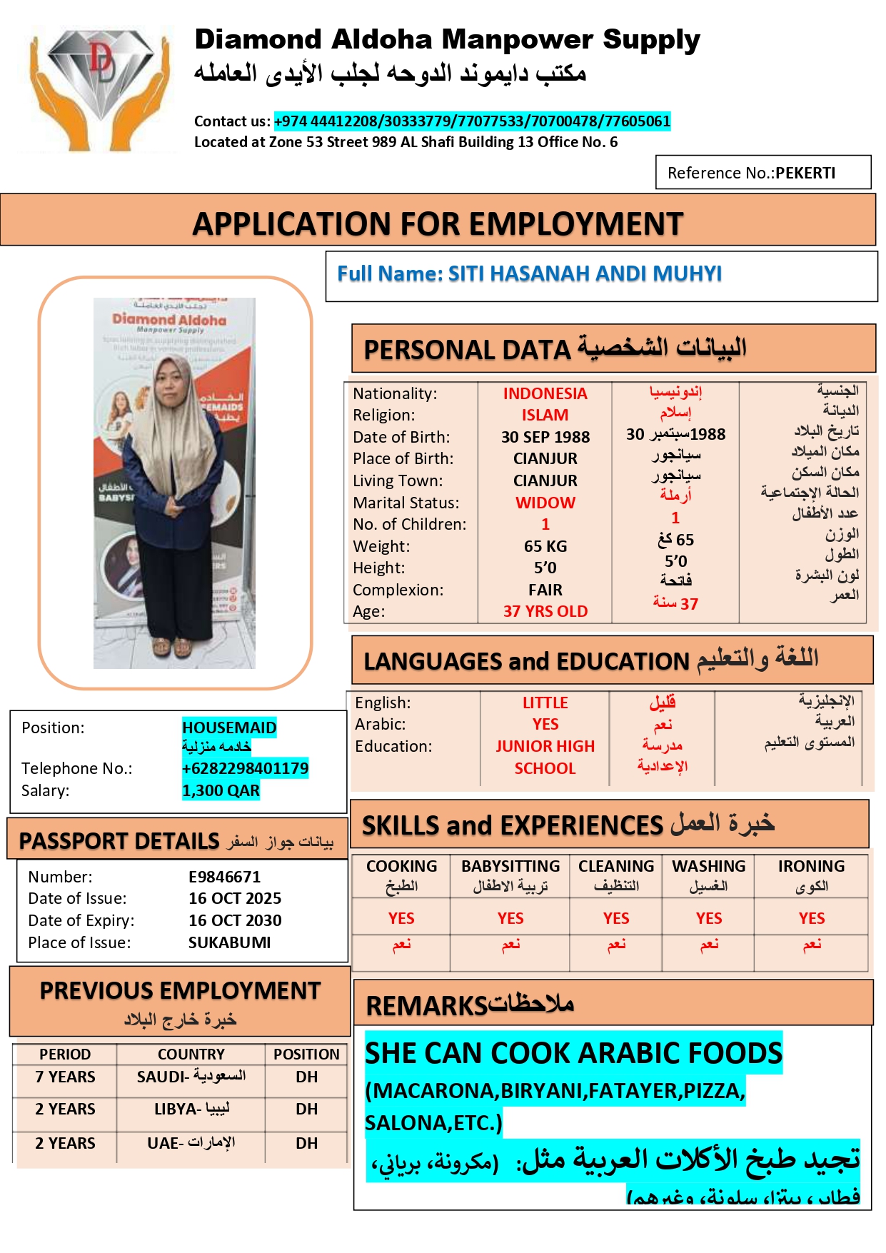 الاسم - عربي SITI HASANA ANDI MUHYI