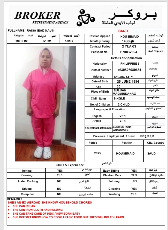 *هي عاملّة سابقة في الخارج، تعرف أعمال المنزل.