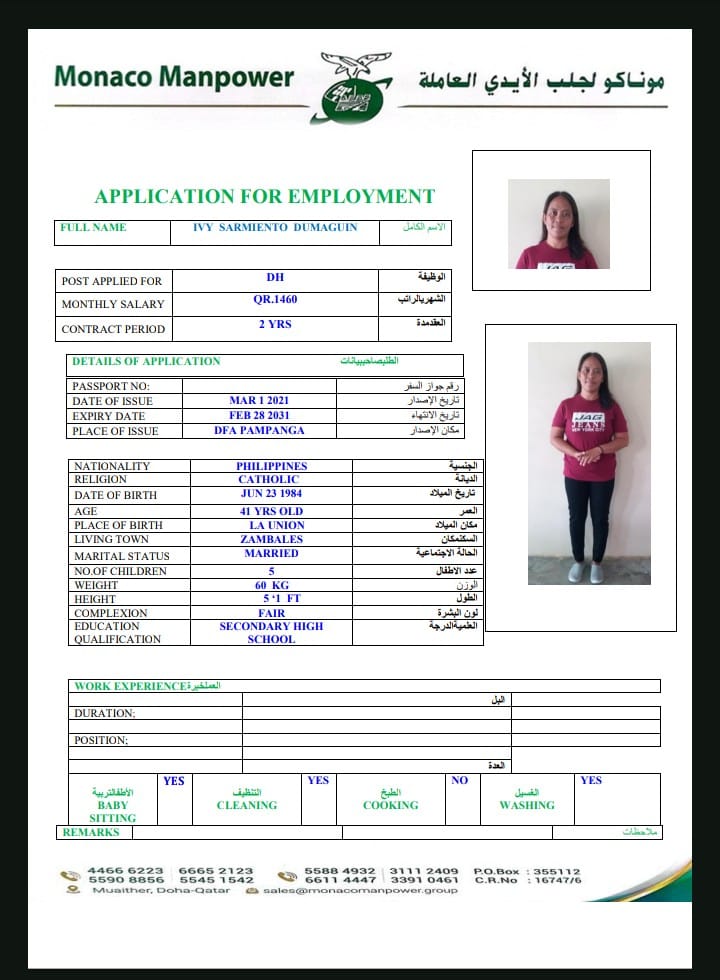 الاسم - عربي IVY SARMIENTO DUMAGUIN