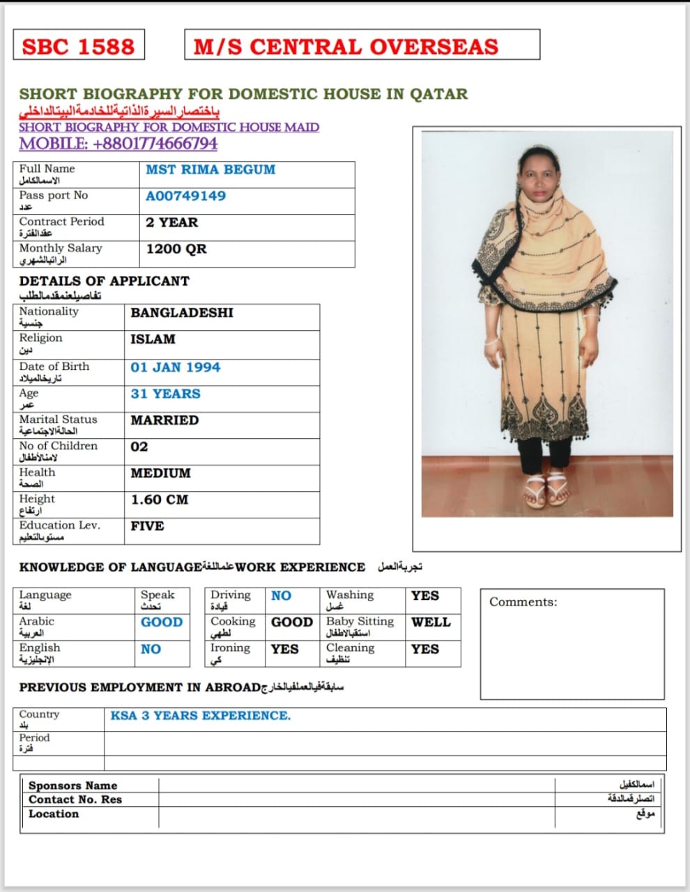 الاسم - عربي ميس فاطمة بارفين