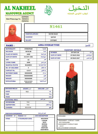 الاسم - عربي ASHA OUSMAN TUKE