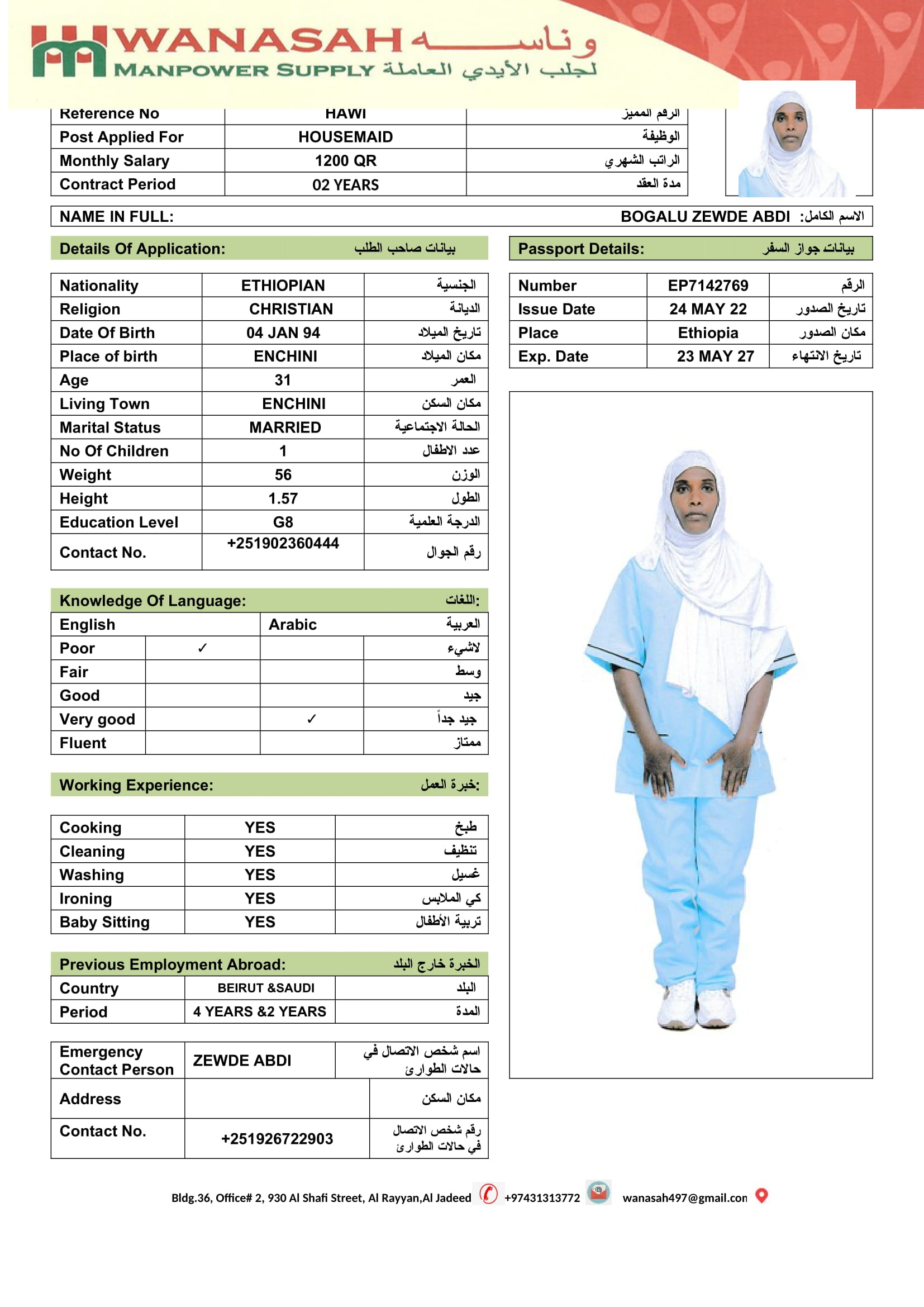 الاسم - عربي bogalu zewde abdi
