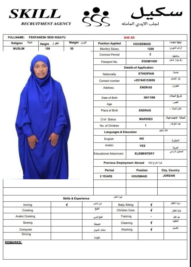 سنتان من الخبرة كخادمة منزل في الأردن.