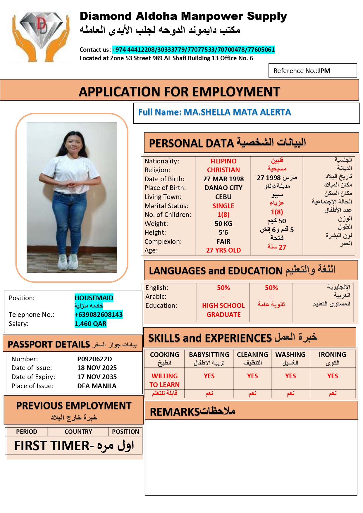 الشركة ‏ دايموند الدوحة لجلب الايدى العاملة