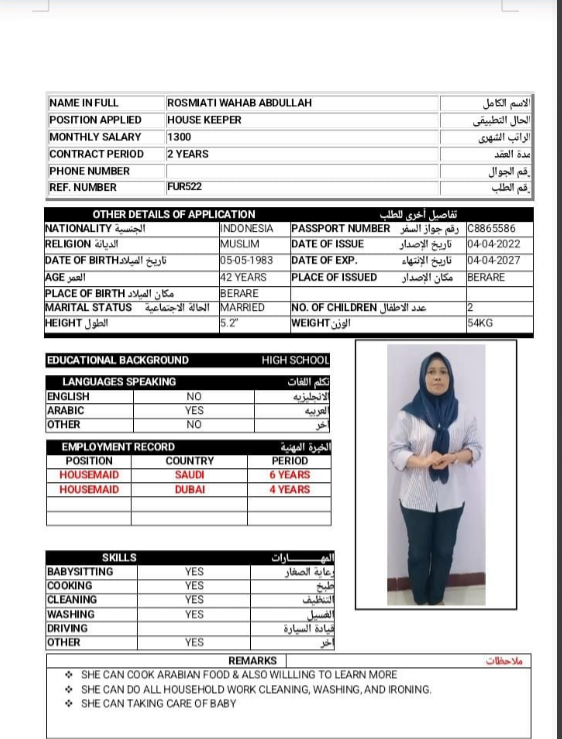 الاسم - عربي ROSMIATI WAHAB ABDULAH