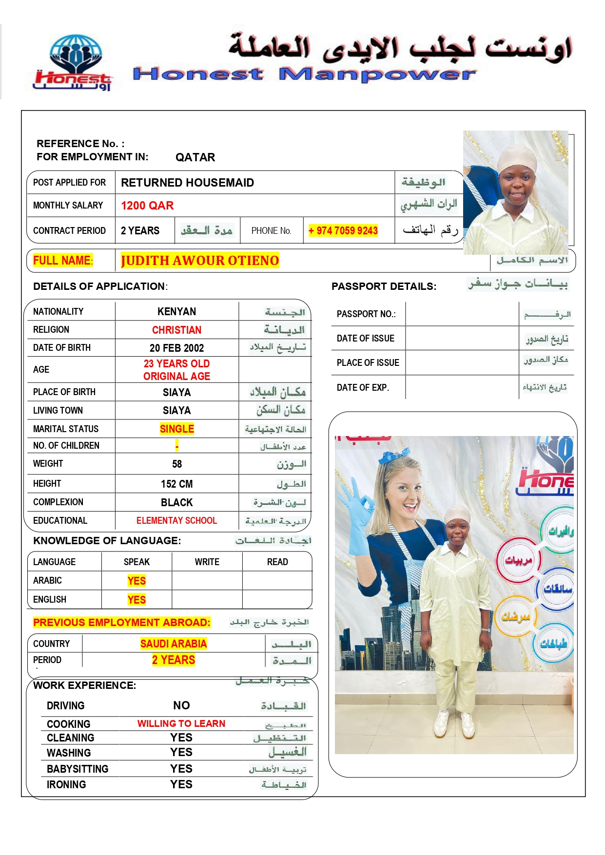 الاسم - عربي JUDITH AWOUR OTIENIO