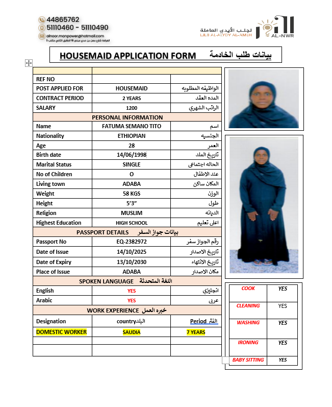 البريد الإلكتروني alnoor.manpower@hotmail.com
