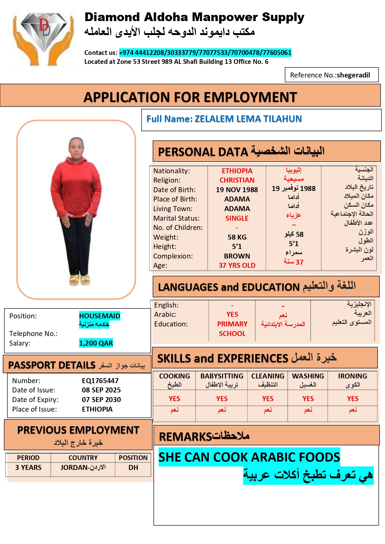 الاسم - عربي ZELALEM LEMA TILAHUN