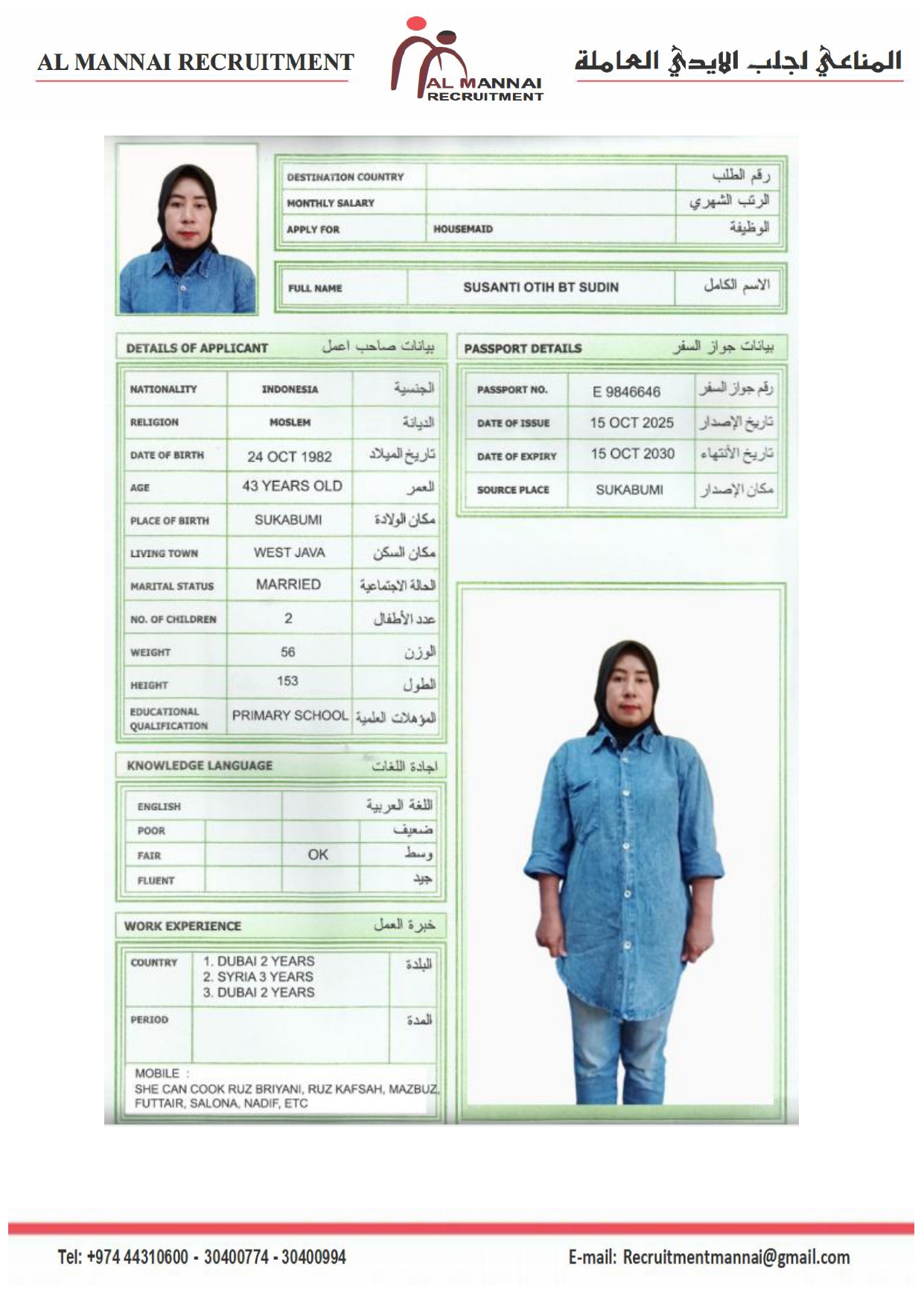 الاسم - عربي SUSANTI OTIH BT SUDIN