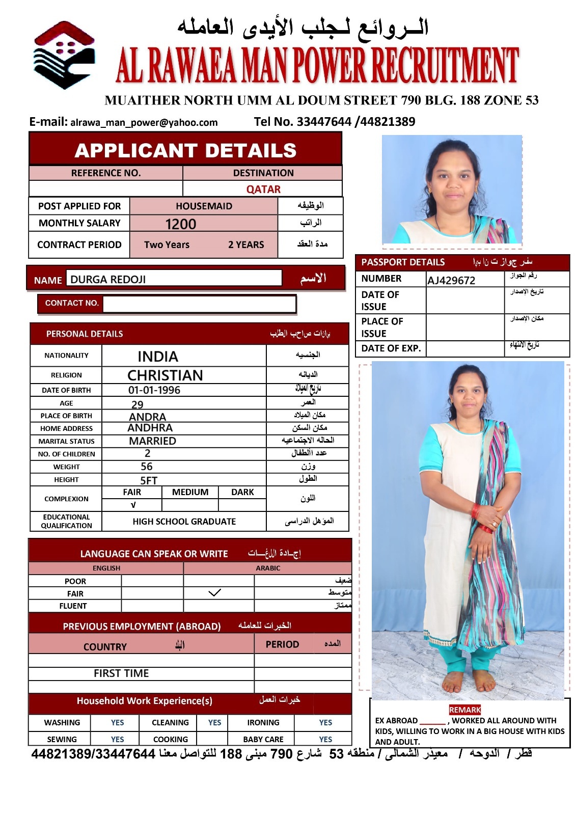 العنوان الدوحه / معيذر الشمالى / شارع ام الدوم منطقه 53 شارع 790 مبنى 188