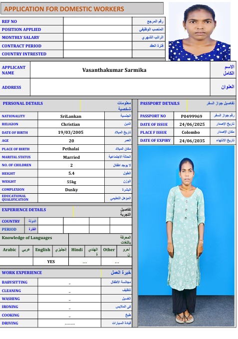 الاسم - عربي VASANTHAKUMAR SARMIKA