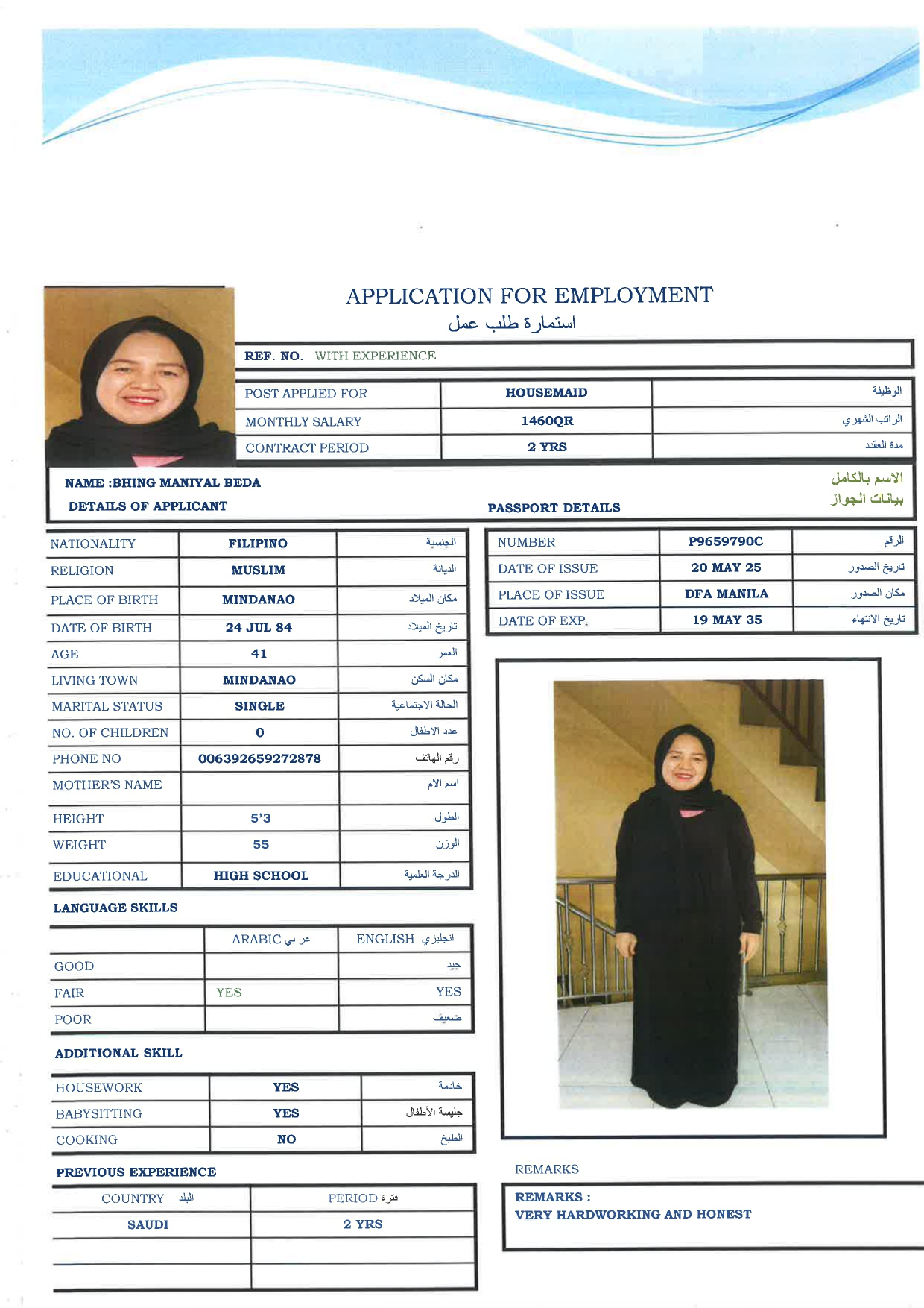 الاسم - عربي بهينغ مانيال بيدا
