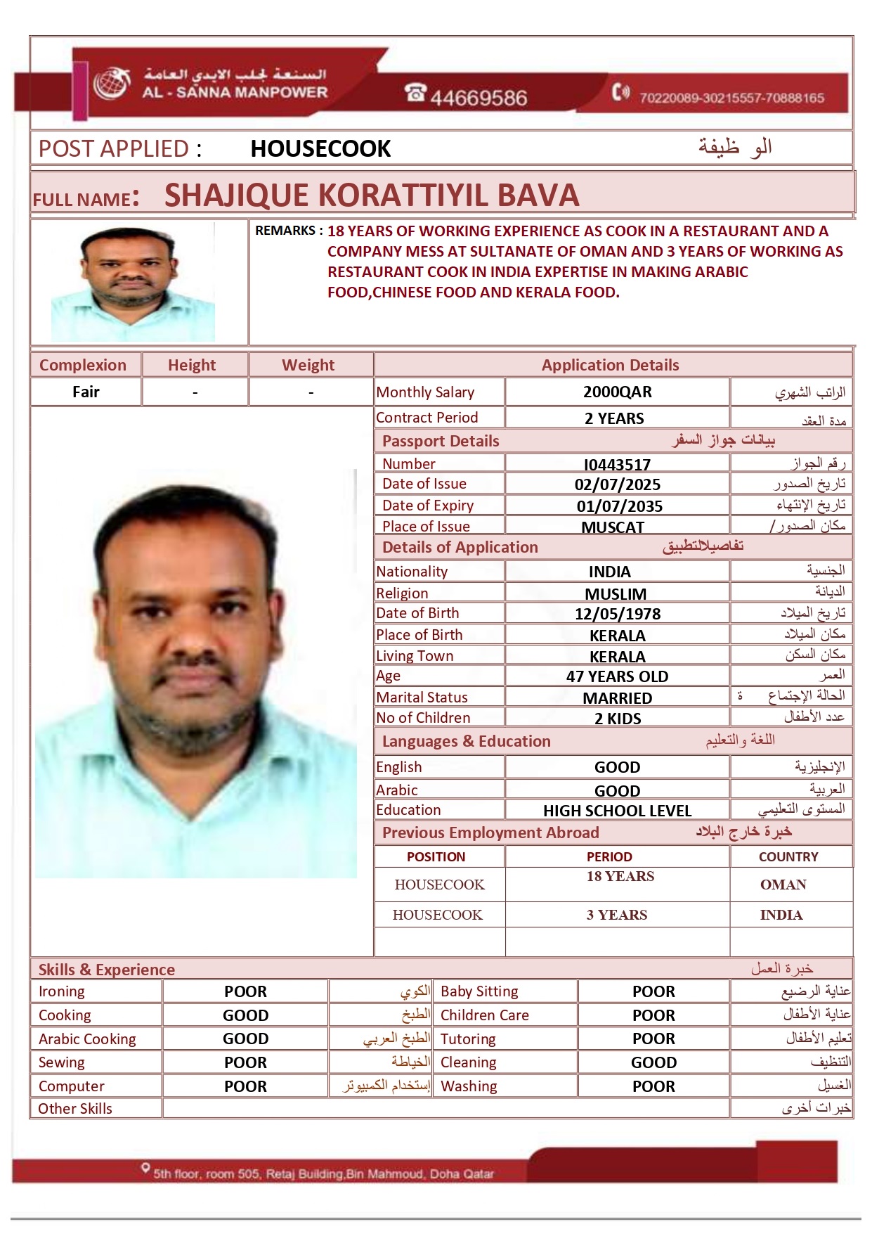 الاسم - عربي SHAJIQUE KORATTIYIL BAVA