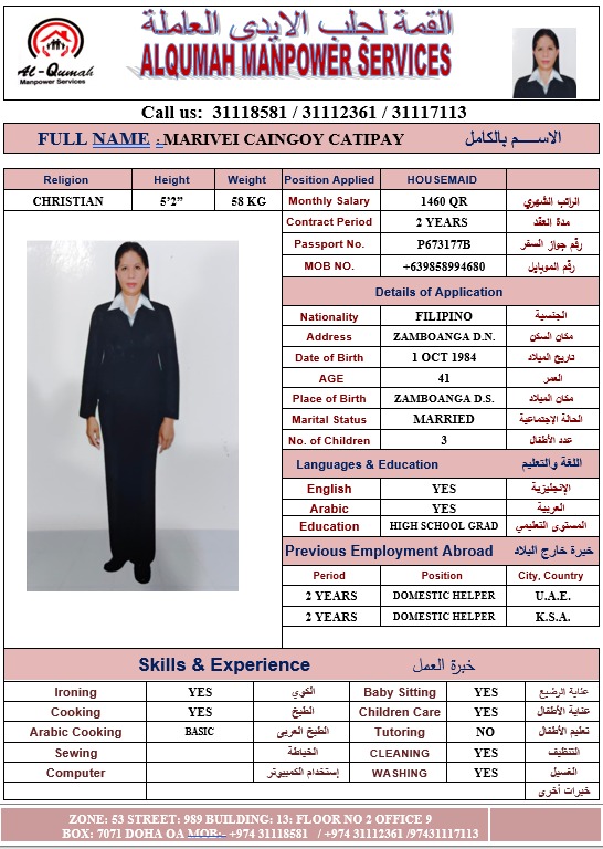 الاسم - عربي MARIVEI CAINGOY CATIPAY