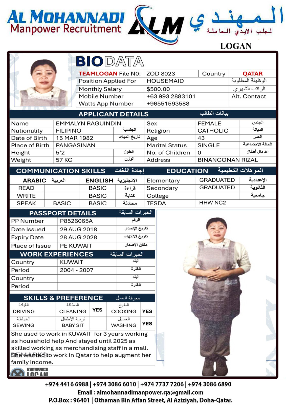 البريد الإلكتروني almohannadimanpower.qa@gmail.com